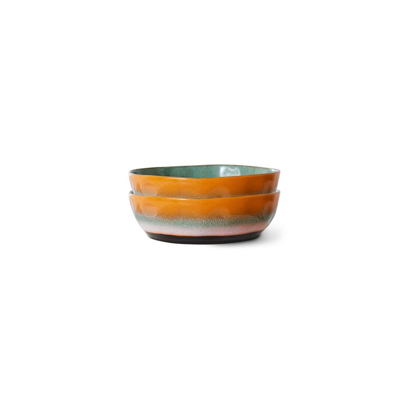 Servez votre plat de pâtes dans un bol unique. Grâce aux glaçures rétro auxquelles vous vous êtes habitué dans la céramique des années 70, votre décor de table se démarquera de la foule. L’intérieur comme l’extérieur des bols de pâtes sont glacés pour vraiment mettre votre plat en valeur.