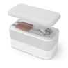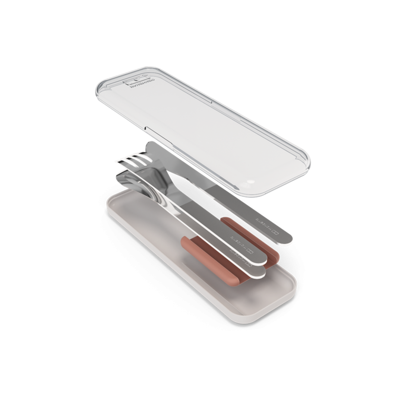 Les couverts pour bento peuvent également être rangés directement sous le couvercle supérieur de votre lunch box grâce à leur support de maintien amovible. Sa douce teinte rose Moka sera la cerise sur votre set déjeuner !
