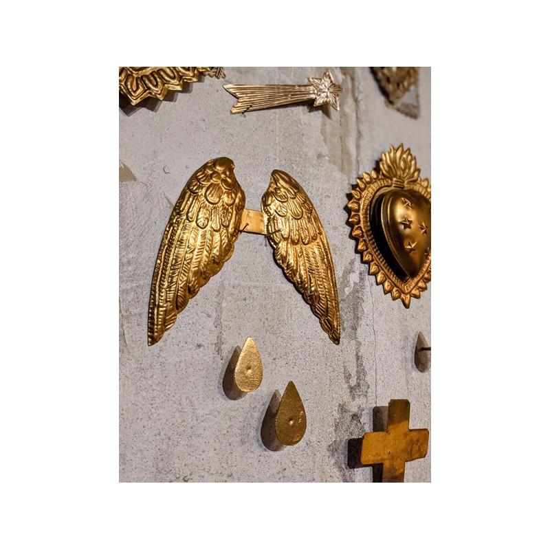 Ex-voto. Objet de décoration mural et symbolique, à l’origine suspendu dans une église, un lieu vénéré, à la suite d’un vœu ou en remerciement d’une grâce obtenue.