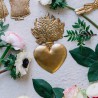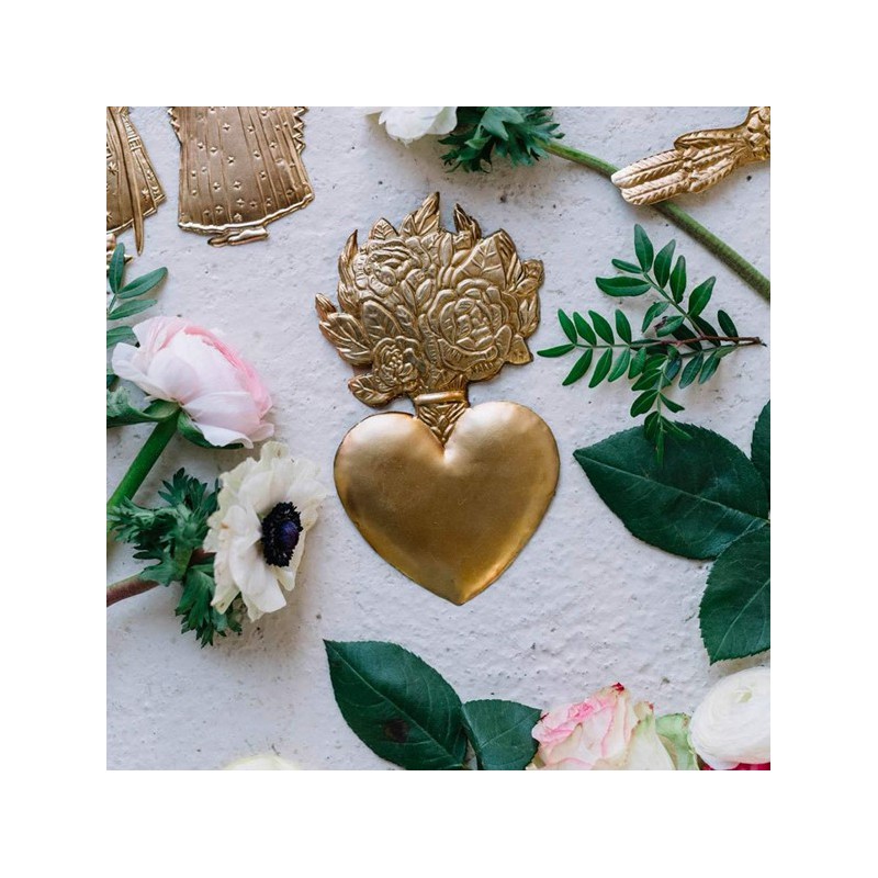 Ex-voto coeur bouquet. Objet de décoration mural et symbolique, à l’origine suspendu dans une église, un lieu vénéré, à la suite d’un vœu ou en remerciement d’une grâce obtenue. Vous pouvez jouer sur l’accumulation en le mixant avec les autres ex-votos.