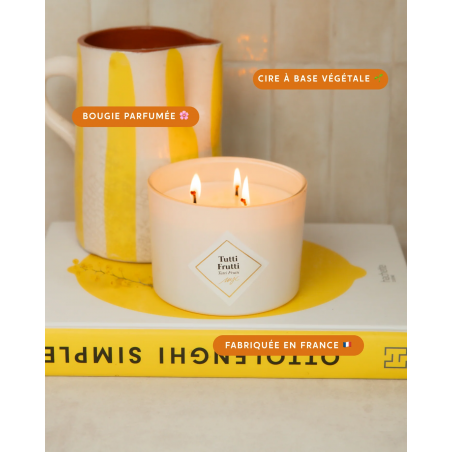 Les grandes bougies 3 mèches sont parfaites pour apporter une ambiance olfactive chaleureuse. Idéales pour les amoureux des bougies ou pour faire un cadeau attentionné. Découvrez un parfum qui éveille vos sens et vous plonge dans la délicieuse insouciance de l’été.