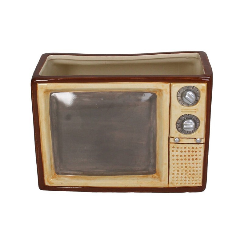 Pot de fleurs TV rétro en dolomite, un eye-catcher créatif et unique.