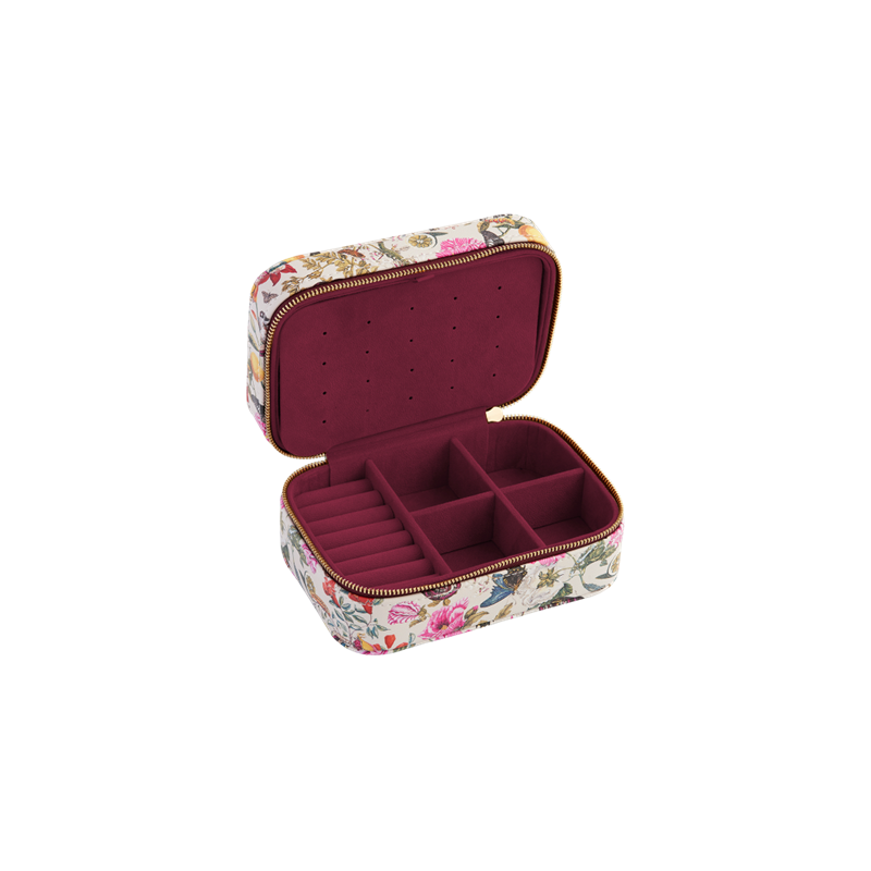 Protégez vos bijoux avec style grâce à notre boîte à bijoux imprimée « Gravures florales ».