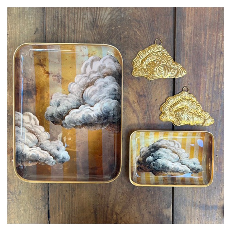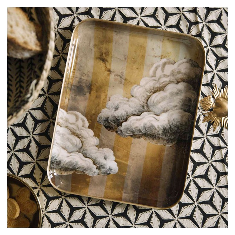 Plateau rectangulaire en aluminium émaillé - imprimé "Nuage".