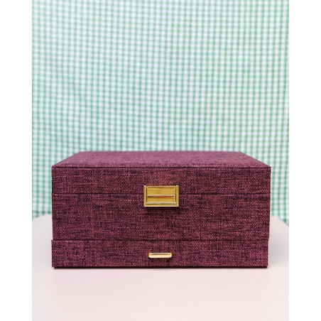 La boîte à bijoux Denise est la plus grande boîte à bijoux de la collection. Ses nombreux emplacements adaptés à chaque type de bijoux vous permettront de ranger toutes vos bagues, colliers, bracelets et boucles d'oreilles sans encombrer votre commode.