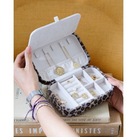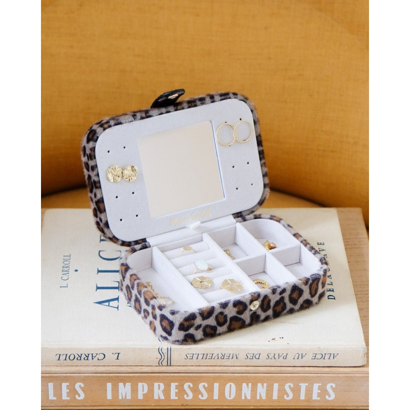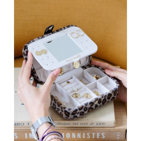 Brigitte est la plus grande boîte à bijoux de voyage de la collection. Vous pourrez y emporter en toute sécurité plusieurs dizaines de bijoux lors de vos vacances et autres déplacements. Mais rassurez-vous, elle n’en demeure pas moins compacte, pratique et facile à glisser dans une valise.
