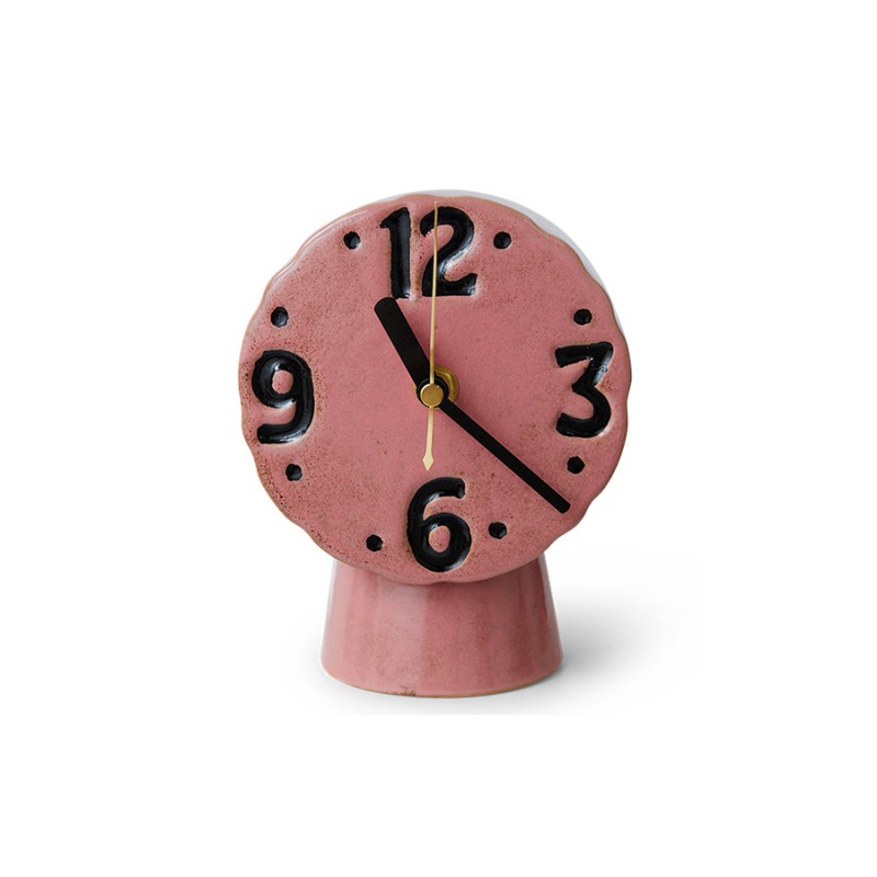 Conçue pour allier fonctionnalité et charme, cette horloge en céramique est unique grâce au savoir-faire artisanal et aux imperfections dues à la cuisson. Son émail et son cadran peint à la main lui confèrent un cachet d'antan, tandis que sa petite taille et sa couleur rafraîchissante en font un objet intemporel pour votre intérieur.