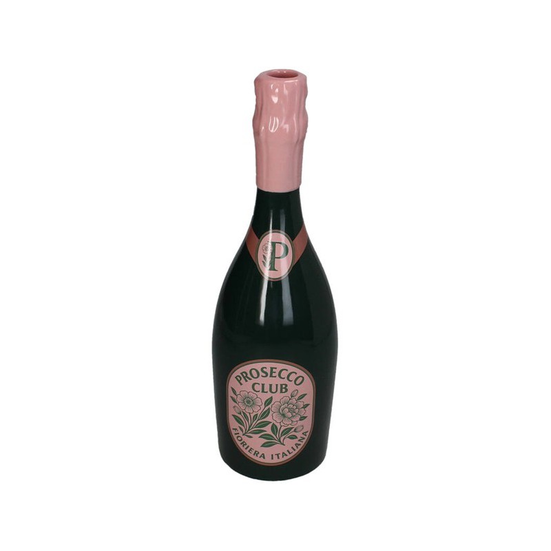 Ce vase en forme de bouteille de prosecco est un objet décoratif original et ludique, d'un vert frais. Son design crée une ambiance à la fois humoristique et accessible, tandis que la faïence lui confère un charme artisanal. Ce vase est idéal pour accueillir des fleurs simples, des fleurs séchées ou comme objet décoratif à part entière