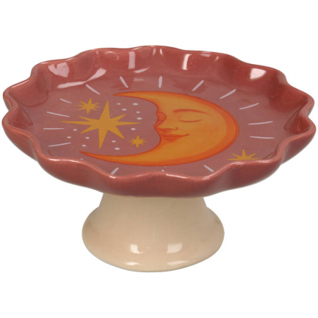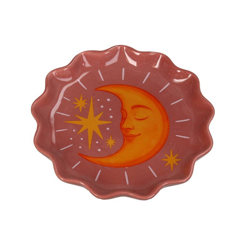 Cette assiette décorative en dolomite, ornée d'un motif de lune, arbore un style original et ludique. Son rebord surélevé et sa finition multicolore lui confèrent un caractère unique. Utilisable comme bol décoratif ou élément de décoration, elle constitue une pièce unique !