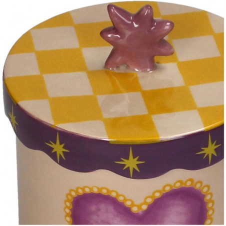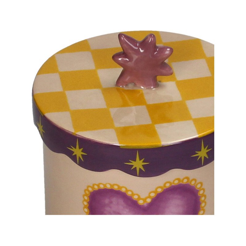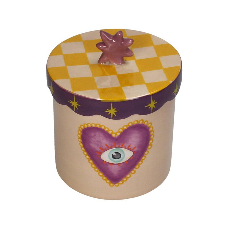 Ce pot en dolomite ornée d'un cœur est un objet décoratif unique, à la fois ludique et raffiné. Son motif graphique et ses couleurs chaudes la rendent immédiatement reconnaissable et séduisant. Idéal pour ranger de petits objets précieux, des bijoux ou des souvenirs.
