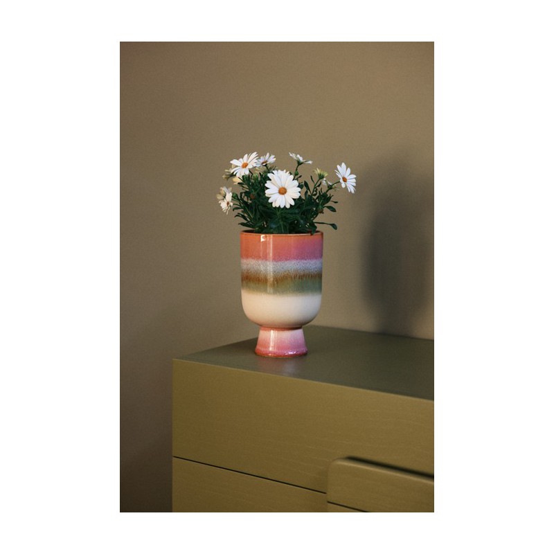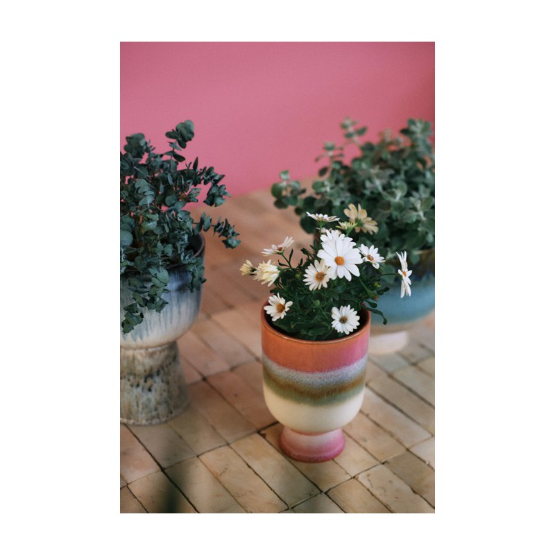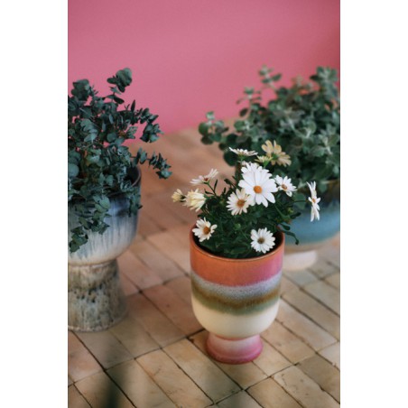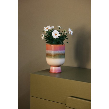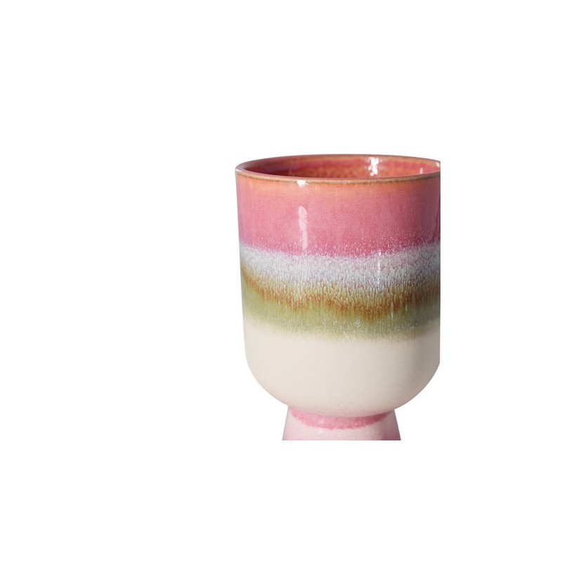 Apportez une touche à la fois ludique et élégante à votre espace avec ce pot rose tendre, rehaussé de blanc et de subtiles touches de vert. Son émail lui confère un fini naturel et organique, pour une pièce véritablement unique. De taille idéale et d'une conception soignée, il offre une façon fraîche et dynamique de mettre en valeur vos plantes préférées.