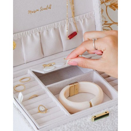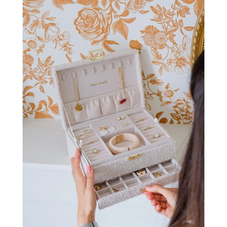 La boîte à bijoux Denise est la plus grande boîte à bijoux de la collection. Ses nombreux emplacements adaptés à chaque type de bijoux vous permettront de ranger toutes vos bagues, colliers, bracelets et boucles d'oreilles sans encombrer votre commode.