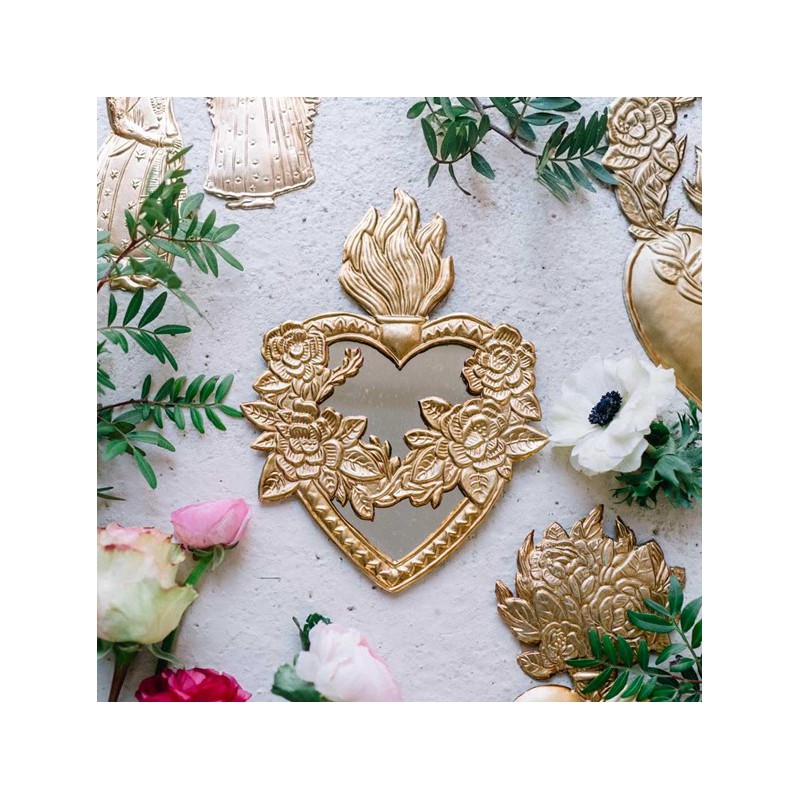 Ce miroir Discret reflète en toute subtilité ! Avec sa patine coloris or, il apportera une touche brillante à votre décoration. Il trouvera sa place dans toutes les pièces de la maison et marquera peut-être le début d’une collection d’ex-votos.