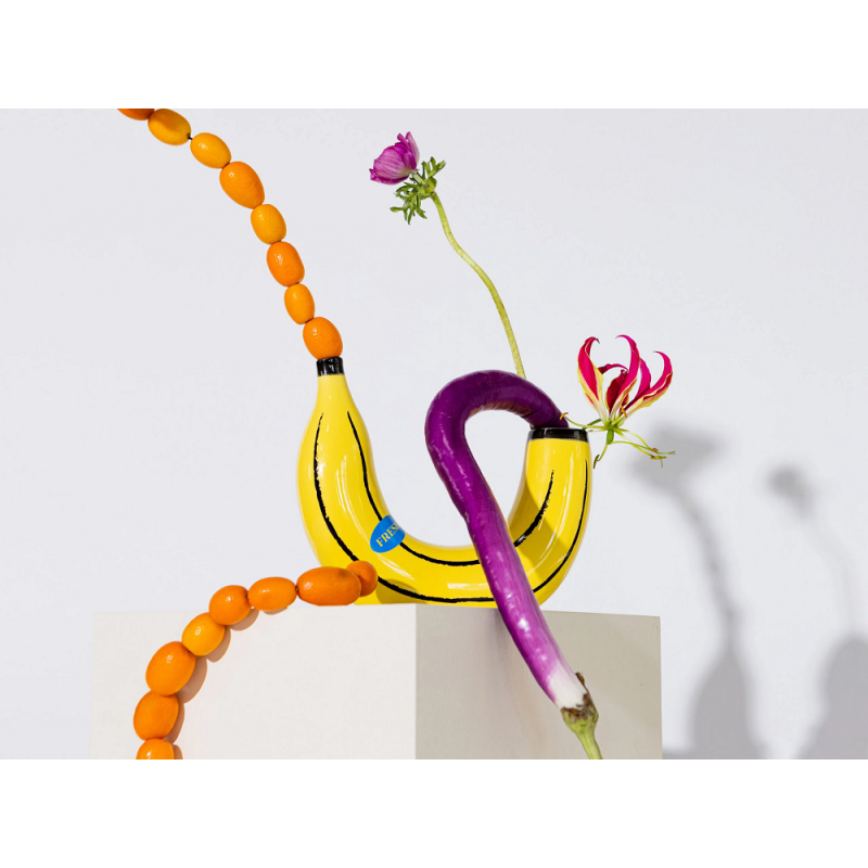 Ce vase banane vibrant avec un double espace pour vos fleurs donnera à votre maison une sensation de bonheur.