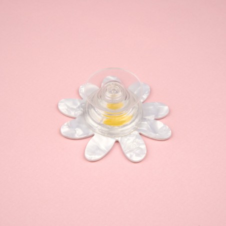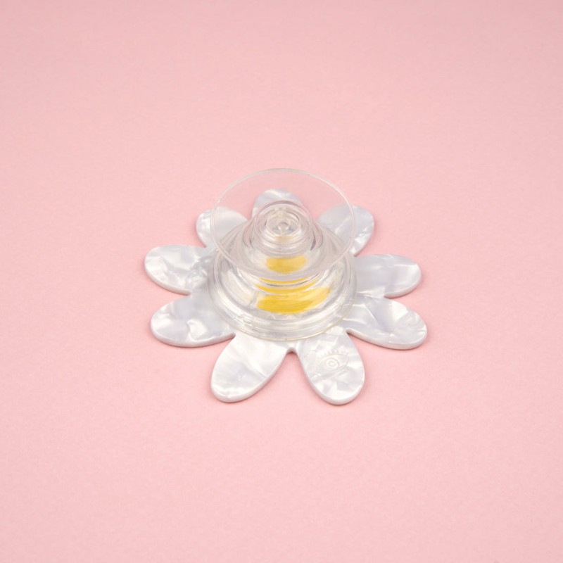 La fleur porte-bonheur de Coucou Suzette nous accompagne désormais au quotidien, bien agrippée à notre cellulaire. Parfait pour être sûr.e que celui-ci ne nous échappe pas des mains.