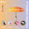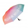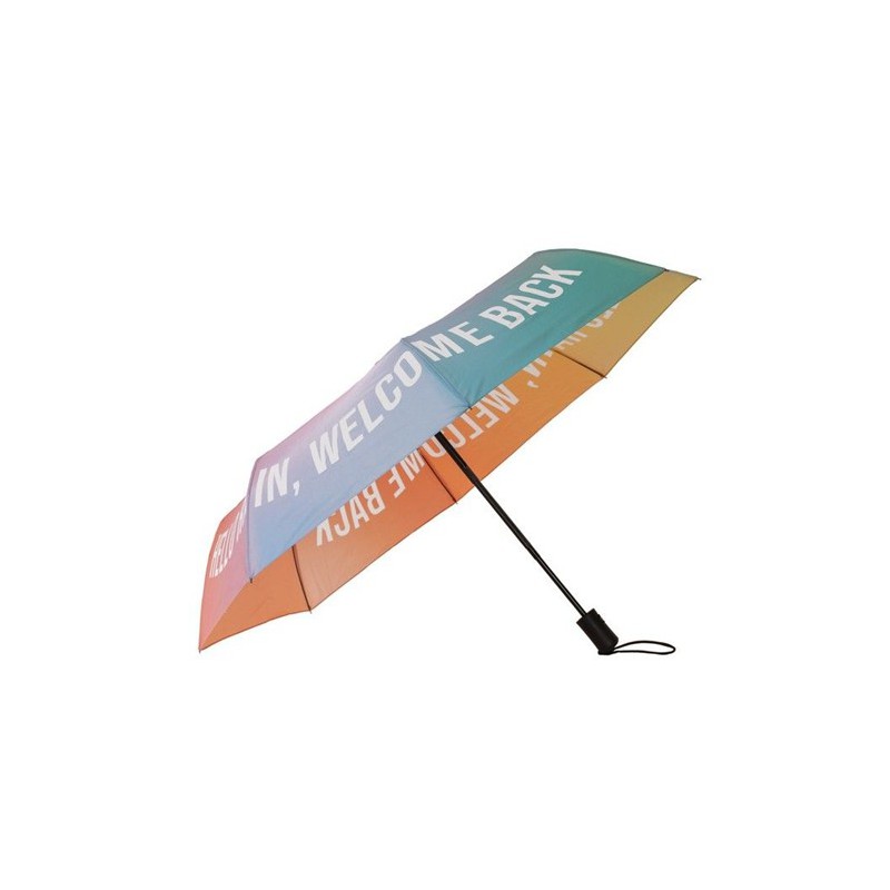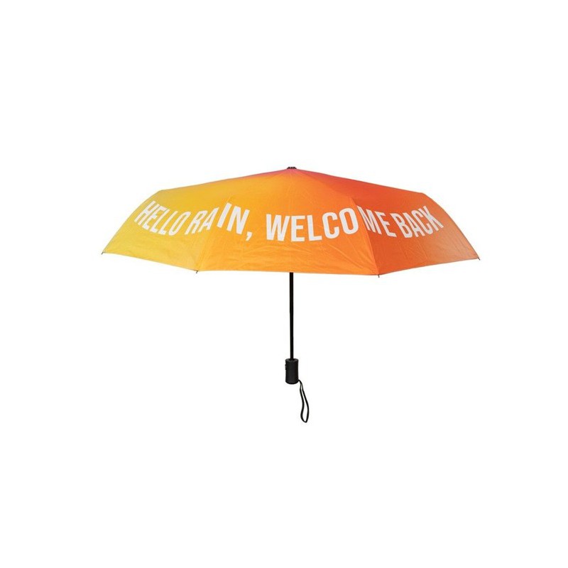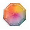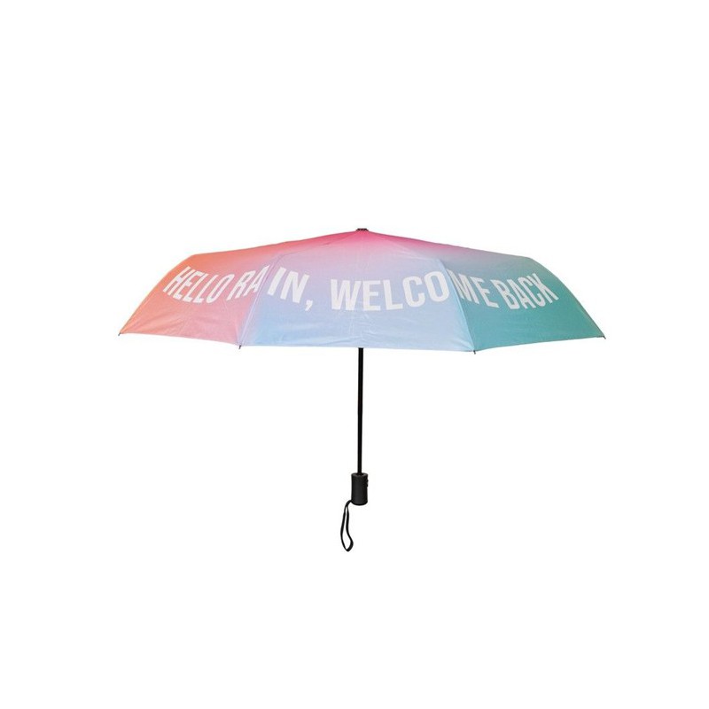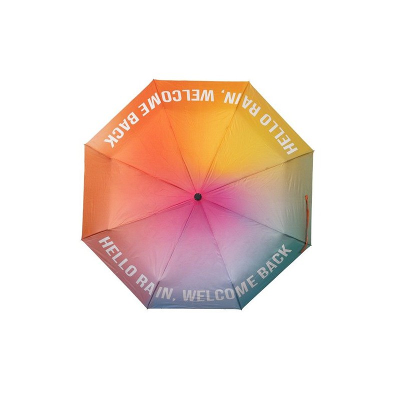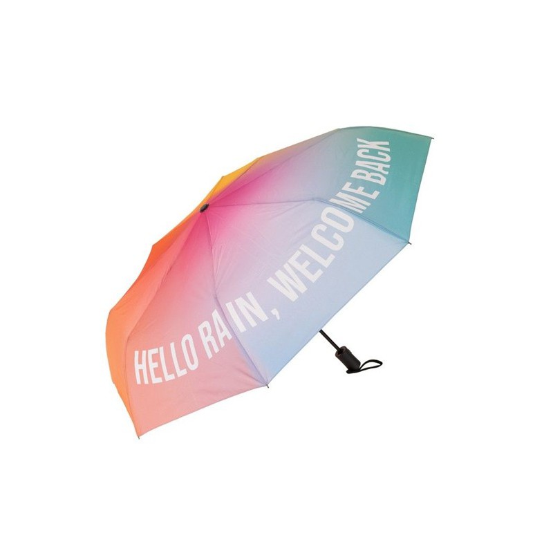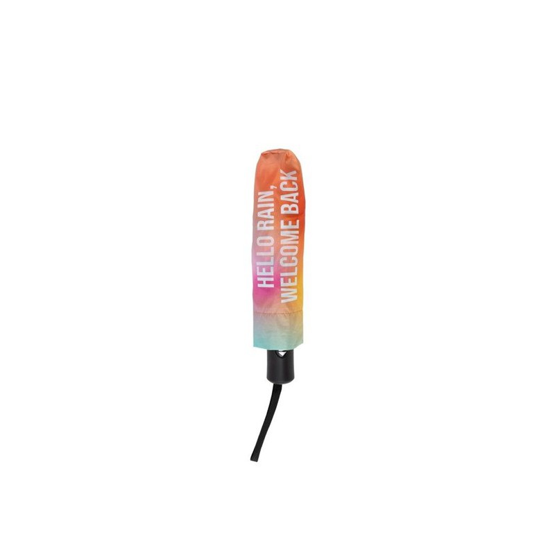 La pluie est de retour, et vous êtes plus que prête à l'accueillir avec ce parapluie original orné du message « Bonjour pluie, bienvenue ! ». Il ne se contentera pas de vous protéger des averses ; son imprimé dégradé multicolore transformera les journées grises en un défilé de couleurs et de bonne humeur.