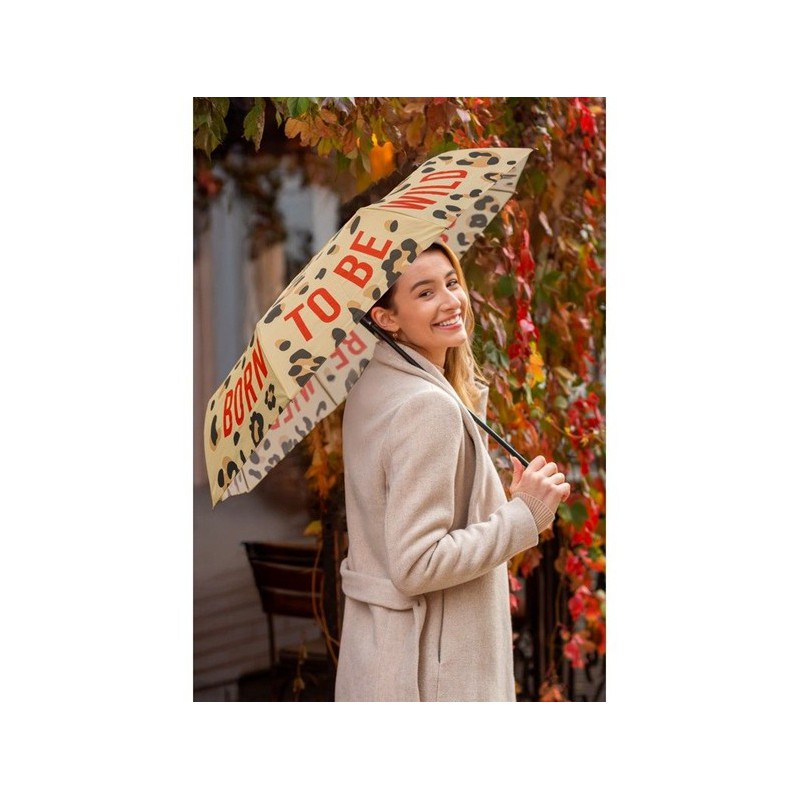 Affrontez la grisaille avec audace et style grâce à ce parapluie pliable à imprimé léopard 🐆. Son message « Né pour être sauvage » affirme que ni les nuages ni les flaques d'eau ne peuvent vous arrêter, car votre esprit indomptable ne se cache pas, même sous la tempête.