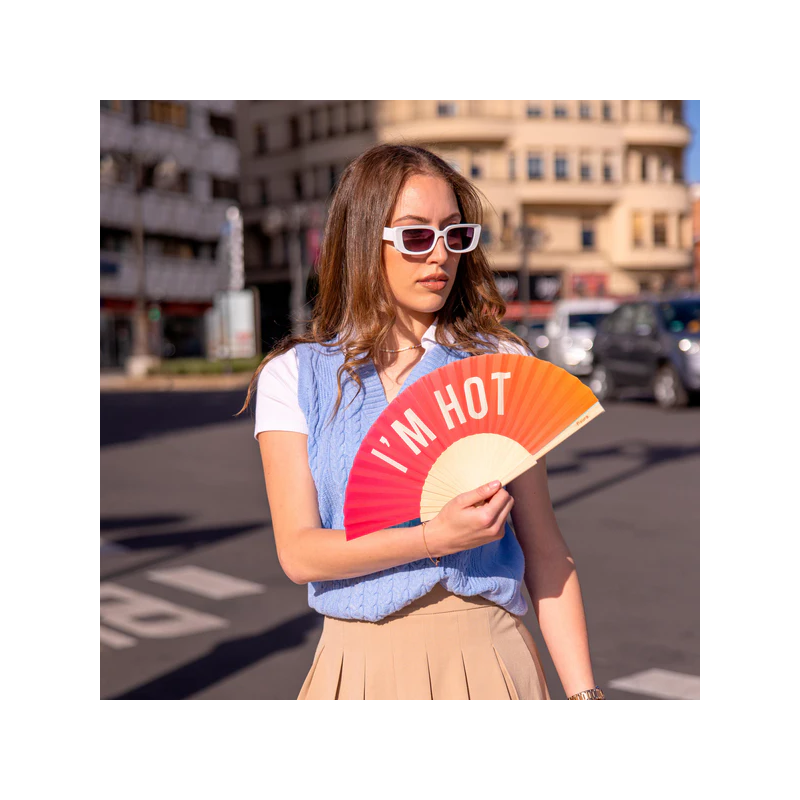 Votre boisson chauffe en deux minutes, vos cheveux sèchent très vite et vous devez marcher dans la rue à la poursuite des ombres. Vous avez trop chaud et vous fondez... Faites-le comprendre avec cet éventail qui deviendra votre accessoire indispensable pour survivre aux journées les plus chaudes ! Peut aussi avoir une double connotation ;)