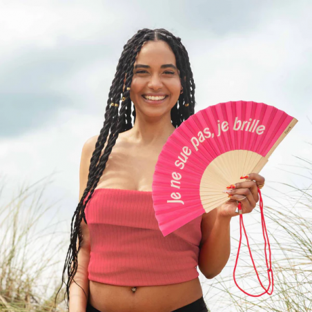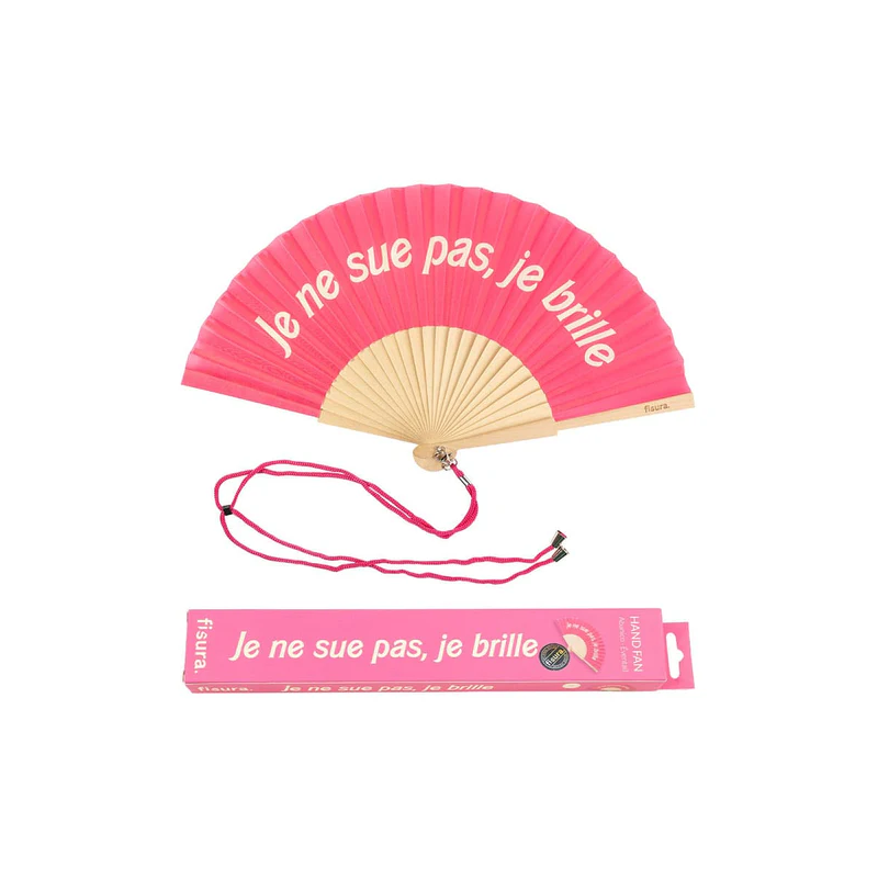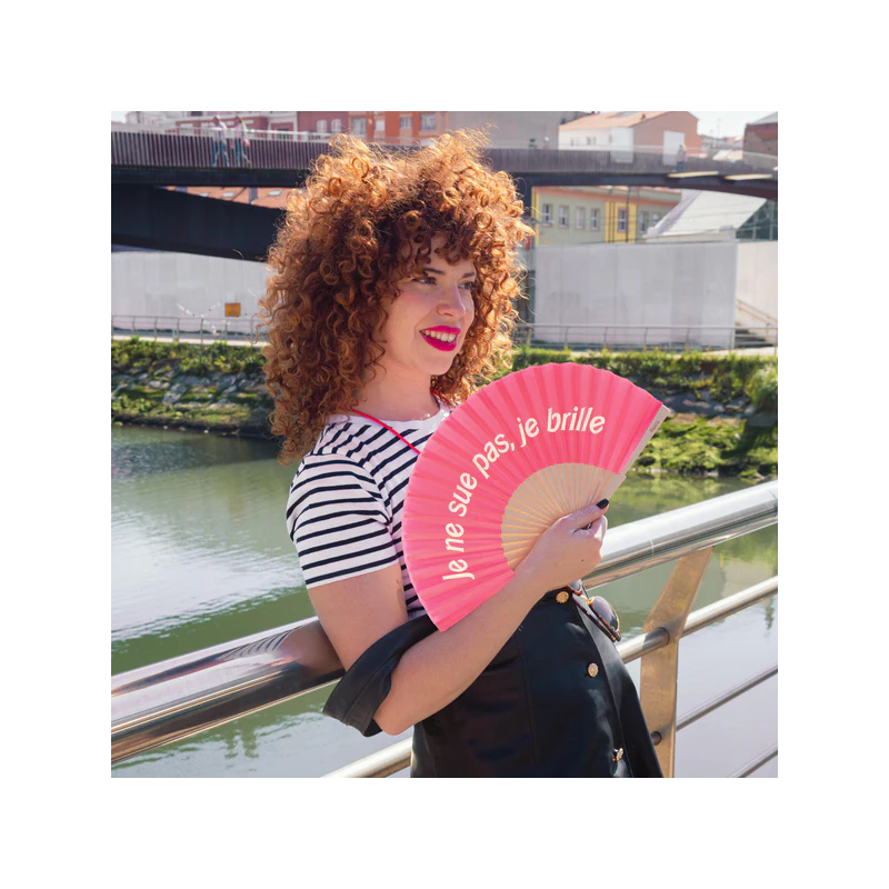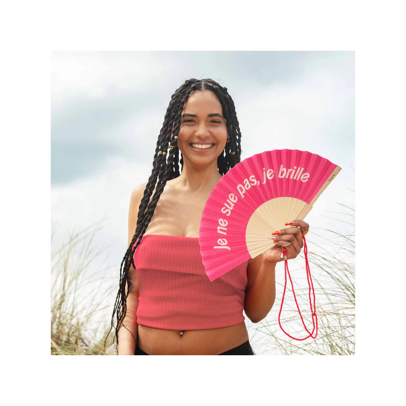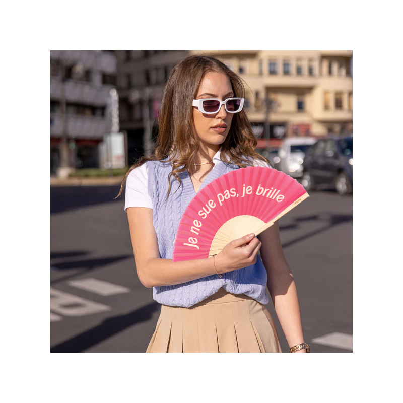 Donnez à vos looks d'été une touche d'humour et de couleur avec cet éventail rose à l’écriture Barbie! Et faites bien comprendre que ce qui est sur votre front n'est pas de la sueur... c'est la brillance que vous dégagez lorsque le soleil vous frappe et comment pourriez-vous ne pas briller sous cette chaleur ? Rafraîchissez-vous avec style et combattez les températures élevées avec le ventilateur portant le message « Je ne sais pas, je brille ».