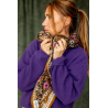 En raison du procédé de teinture naturelle utilisé, le foulard peut déteindre par frottements sur d'autres matières. Nous vous recommandons de le laver à la main seul avant de le porter pour la première fois