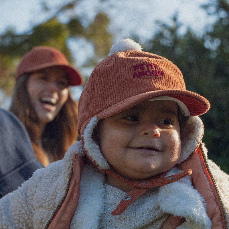 Chapka velours côtelé, doublée en fausse fourrure, disponible de 3 mois à 6 ans