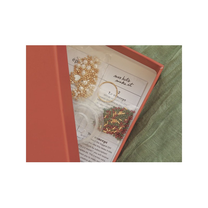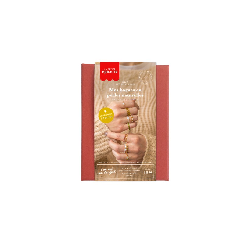 Découvrez le Kit MKMI Mes Bagues en Perles Naturelles, une box créative raffinée qui allie simplicité et sophistication. Ce kit vous permet de réaliser une dizaine de bagues délicates, en mélangeant perles naturelles et perles dorées à l’or fin. Les tons chauds du vert, doré, beige, brun et rouge se combinent harmonieusement pour créer des bijoux intemporels, parfaits à porter seuls ou en accumulation. Une véritable invitation à exprimer votre créativité et à concevoir des accessoires uniques et élégants.