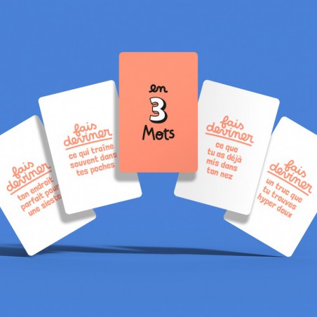 Faites une pile avec toutes les cartes. Le premier joueur pioche une carte question sans la montrer et y répond en 1 mot dans sa tête. La carte visible sur la pile restante indique le nombre de mots qu’il doit utiliser pour faire deviner sa réponse. Il dit son ou ses mots-indices (selon le chiffre imposé) pendant que les autres essaient de deviner. Chacun propose un mot et si la réponse est trouvée, c'est 1 point pour le joueur et celui qui a deviné !
