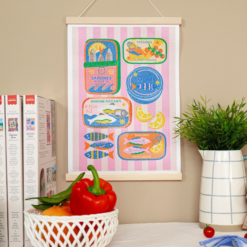 La collection de Diamond Painting s'élargie avec des modèles frais et audacieux comme le Petit Diamond Sardine Cans ! Un design pop et acidulé qui joue avec les codes graphiques de l’été et de la gourmandise un diamant après l'autre.