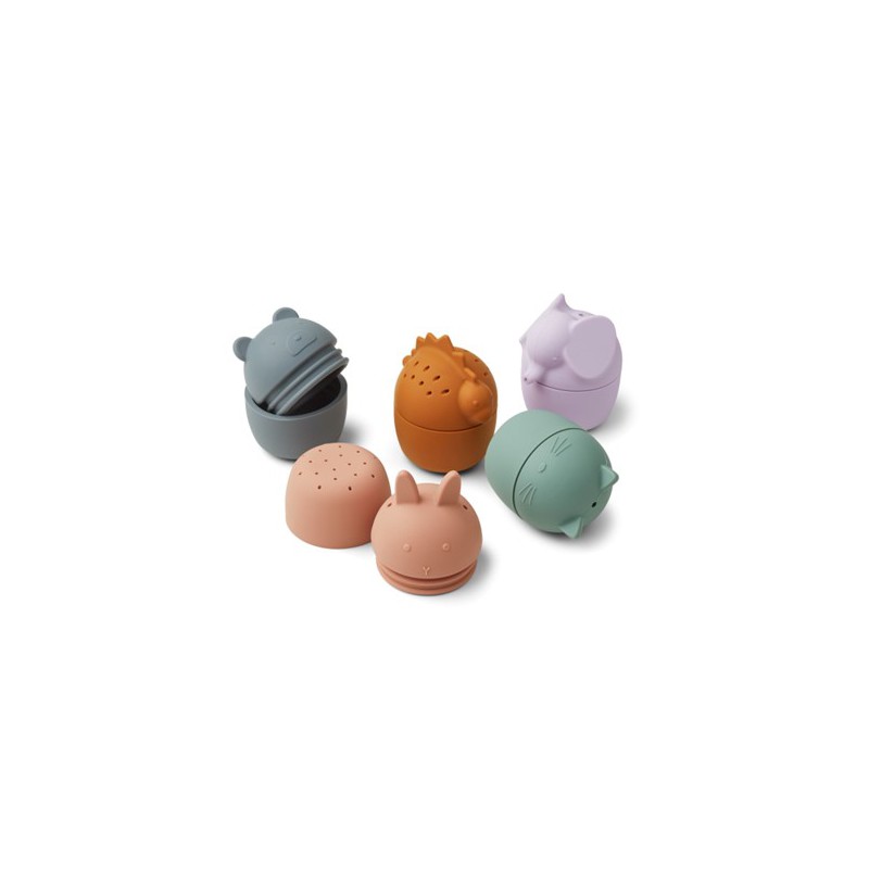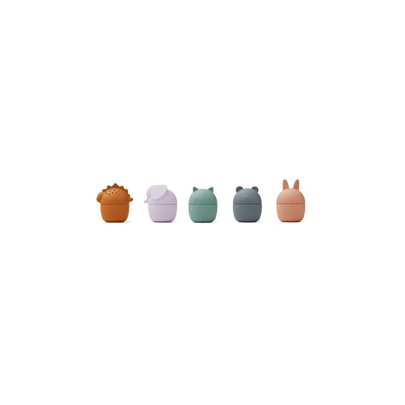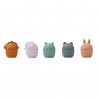 JOUETS DE BAIN ANIMAUX ENFANTS – LOT DE 5Faites du bain un moment agréable avec les cinq jouets de bain Gaby en 100% silicone. En forme de dino, d'éléphant, de chat, d'ours et de lapin, les adorables jouets flottent parfaitement sur l'eau et sont faciles à saisir et à tenir.