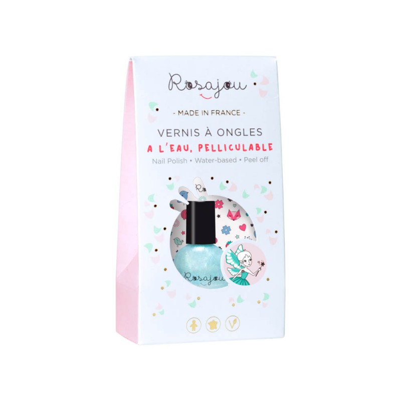Un vernis pour enfant de couleur bleu avec des nacres afin d'avoir une manucure aux reflets pailletés et colorés.
