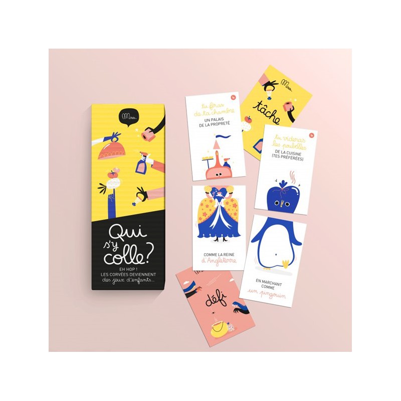 La solution est peut-être dans ce jeu... Une fois par semaine, faites piocher une carte "tâche" et une carte "défi" à chaque membre de la famille (même les plus filous). Eh hop ! Les corvées deviennent des jeux d'enfants !