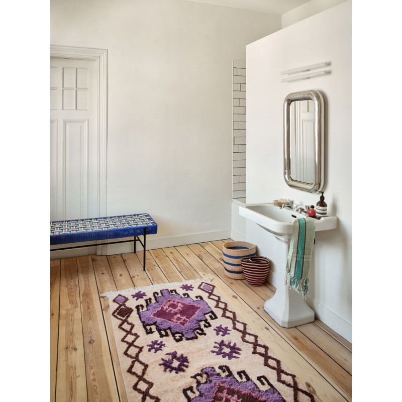 Égayez votre salle de bain avec le tapis de bain bohème. Idéal pour ajouter une touche de fantaisie et de confort, ce tapis coloré présente un équilibre harmonieux de violets apaisants et de roses tendres, agencés en un motif dynamique. Conçu avec style et fonctionnalité, ce tapis de bain est fabriqué en coton de haute qualité, à la fois résistant et d'une douceur incomparable, et doté d'une couche antidérapante pour plus de sécurité.