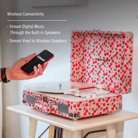 (Re)découvrez la magie du vinyle avec le tourne-disque Crosley Cruiser Plus. Ce tourne-disque en forme de mallette a un aspect ludique et est facile à utiliser. Connectez votre téléphone avec Bluetooth, aux haut-parleurs intégrés de votre tourne-disque et profitez de votre musique numériques toute la journée. Vous pouvez également connecter un haut-parleur Bluetooth externe pour obtenir un son amplifié. Le tourne-disque Cruiser Plus est doté d'un contrôle du volume sonore, d'une entrée auxiliaire, d'une prise casque et d'une sortie RCA.