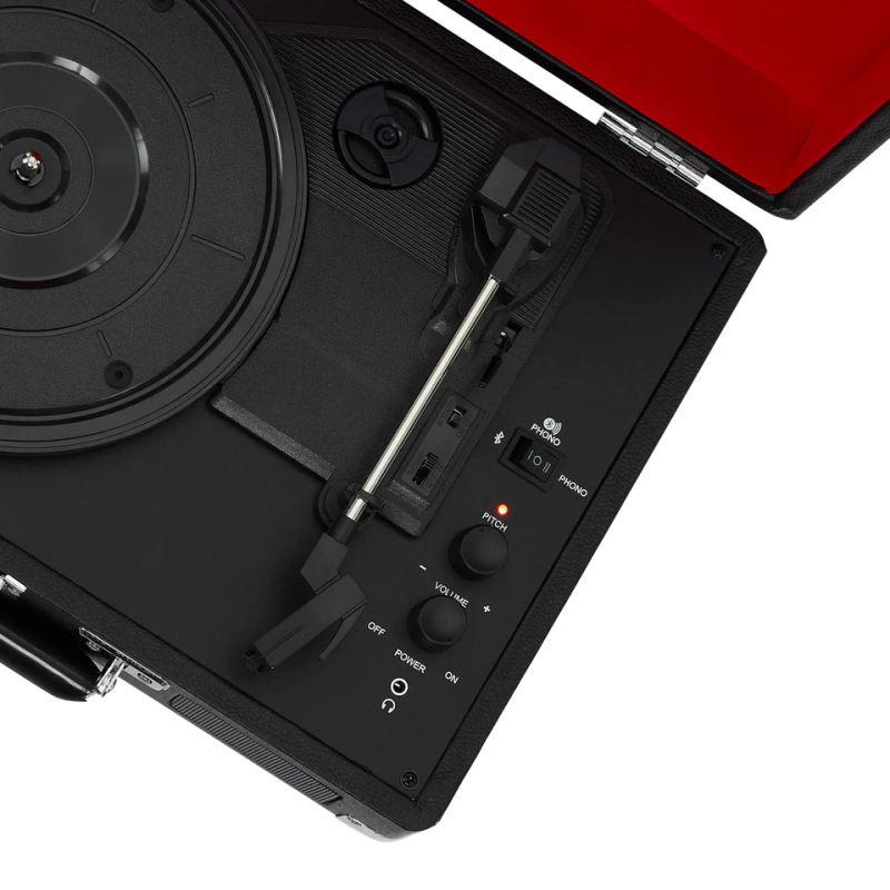 (Re)découvrez la magie du vinyle avec le tourne-disque Crosley Cruiser Plus. Ce tourne-disque en forme de mallette a un aspect ludique et est facile à utiliser. Connectez votre téléphone avec Bluetooth, aux haut-parleurs intégrés de votre tourne-disque et profitez de votre musique numériques toute la journée. Vous pouvez également connecter un haut-parleur Bluetooth externe pour obtenir un son amplifié. Le tourne-disque Cruiser Plus est doté d'un contrôle du volume sonore, d'une entrée auxiliaire, d'une prise casque et d'une sortie RCA.