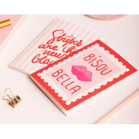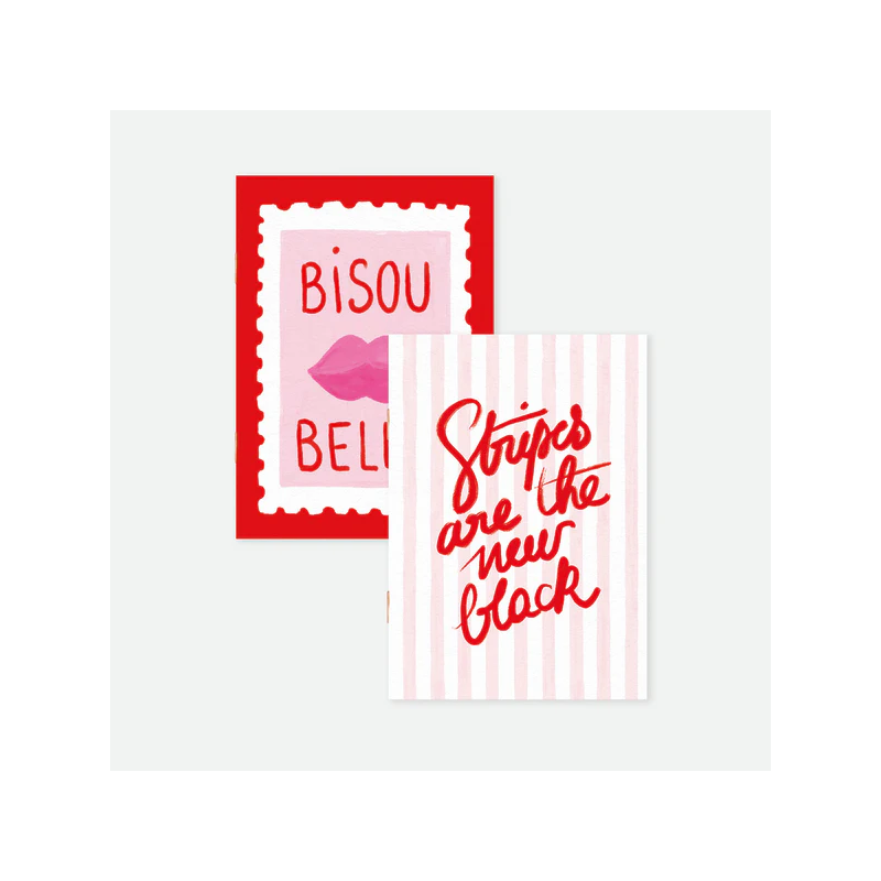 Ajoutez une touche de glamour et de romantisme à vos notes avec ce duo de carnets Bisous Bella Stripes A6. Parfait pour noter vos pensées, vos listes ou vos inspirations, ce coffret compact vous accompagne partout avec style.