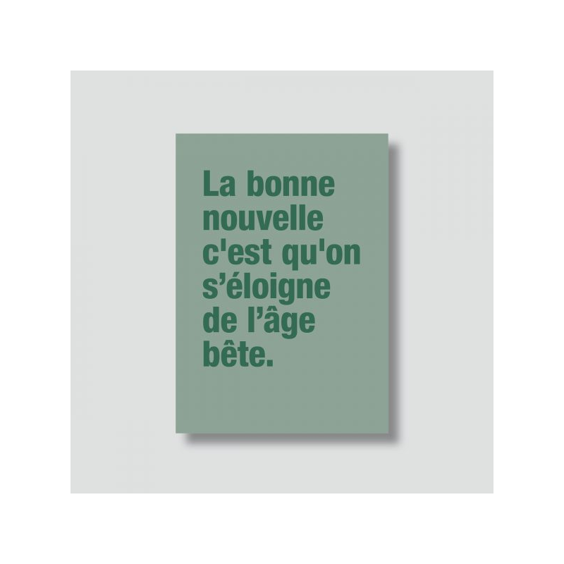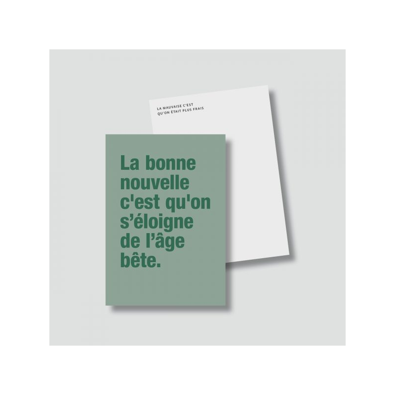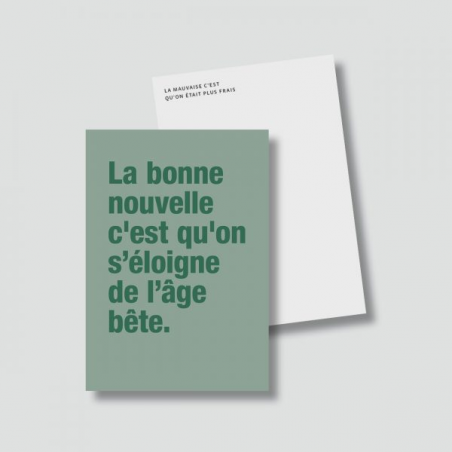 CARTE ANNIVERSAIRE – LA BONNE NOUVELLE C’EST QU’ON S’ÉLOIGNE DE L’ÂGE BÊTE