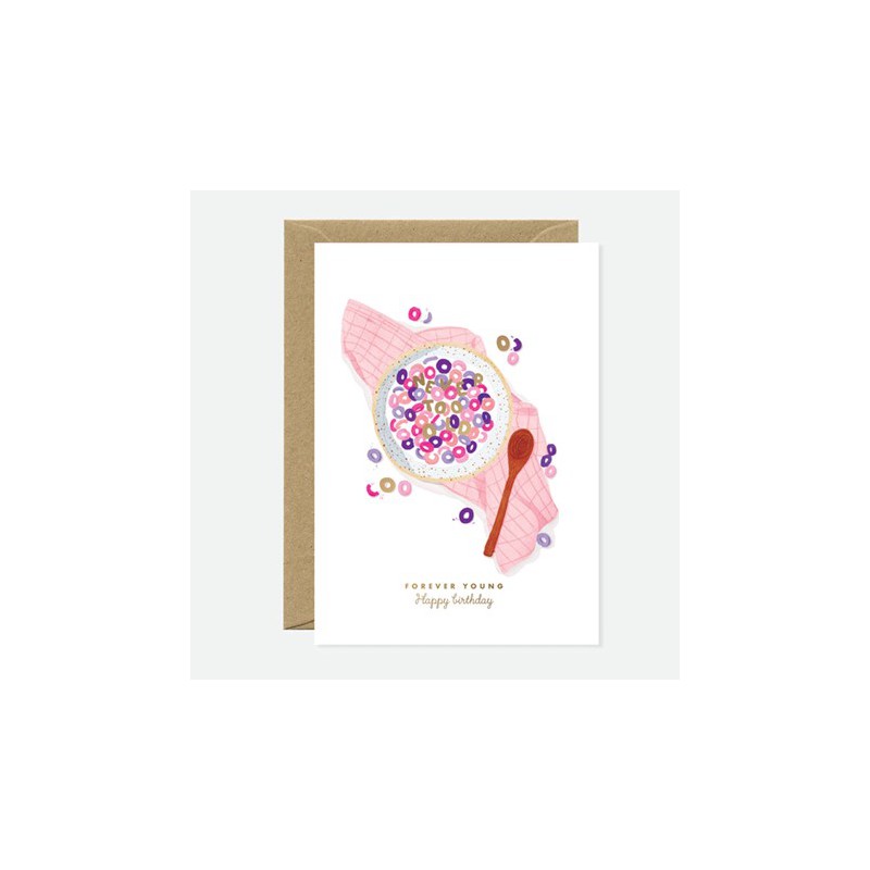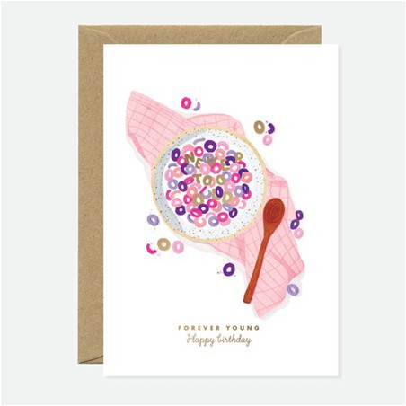 Célébrez la joie intemporelle avec la carte Cheerios Forever Young d'All the Ways to Say. Avec ses touches dorées éclatantes et son design amusant, cette carte est parfaite pour envoyer des vœux d'anniversaire joyeux ou des messages encourageants qui gardent l'esprit jeune. Une façon élégante et ludique de dire « santé » à la vie !