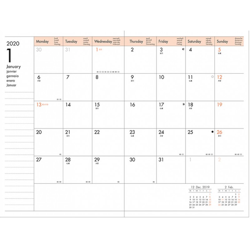 Type vertical populaire de 16 heures sur une base horaire avec des pages de planning mensuel.