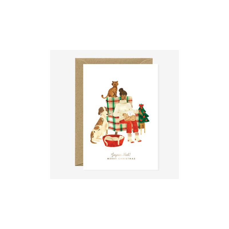 La carte de vœux Family Pets Christmas d’All the Ways to Say illustre un moment familial chaleureux entouré de chiens et de chats. Embellie de détails dorés, elle est parfaite pour adresser des vœux de Noël tendres et réconfortants, emplis d’amour et de douceur.