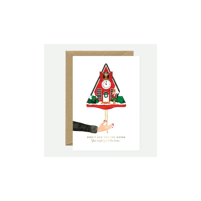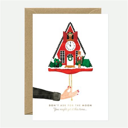 🕰️🎄 La carte de vœux de Noël « Coucou de Noël » de All the Ways to Say capture la magie des fêtes avec une horloge à coucou fantaisiste de style chalet. Entourée de détails festifs et rehaussée de subtiles touches de dorure, cette carte apporte une note de charme et de nostalgie à vos vœux de Noël.