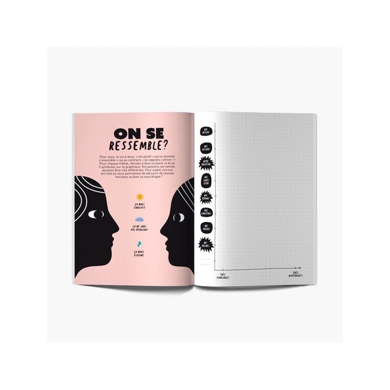 Voici un livre qui s'adresse à tous les couples ! Que vous vous connaissiez depuis quelques mois ou depuis de longues années, l'idée est de partager, rien qu'à deux, un moment étonnant de complicité. Ceci dit, derrière l'apparente légèreté de ces pages, ne vous y trompez pas, vous aborderez les sujets essentiels de votre couple, sans tabous !