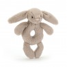 Un régal pour les petites mains, le hochet anneau Bashful Cream Bunny peut être saisi par ses pattes douces, ses longues oreilles tombantes ou son ventre en forme d'anneau. Lorsqu'on le secoue doucement, il fait sonner le hochet à l'intérieur, pour le plus grand plaisir de bébé ! Fabriqué dans une fourrure couleur crème fabriquée à partir de fibres recyclées avec un nez en suédine rose Bashful Bunny et des yeux brodés.