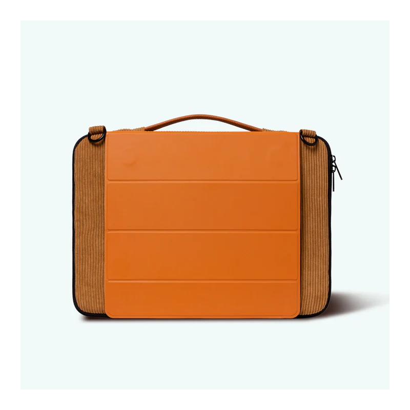 À glisser dans votre sac à dos grâce à son format plat, ou encore à transporter à l’épaule grâce à sa bandoulière amovible (vendue avec le sac).