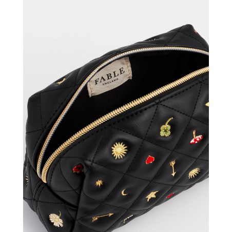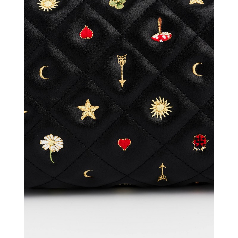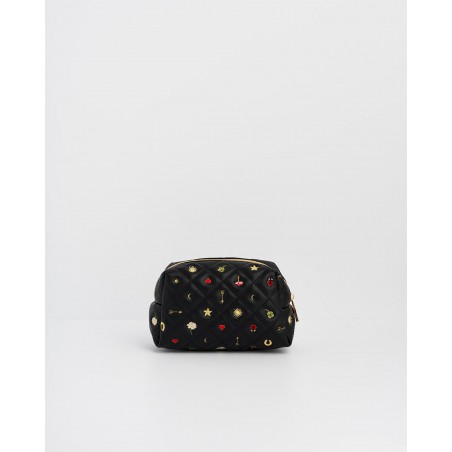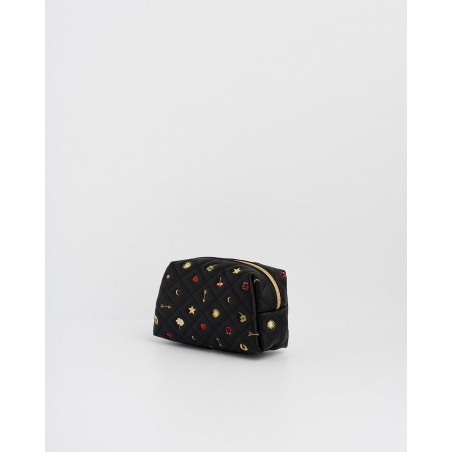 Élégante et polyvalente, la pochette noire matelassée à broderies florales est idéale pour transporter vos petits objets essentiels avec style. Confectionnée en polyuréthane lisse avec une finition matelassée et des broderies florales raffinées, cette pochette allie sophistication et praticité, parfaite au quotidien comme en voyage.