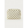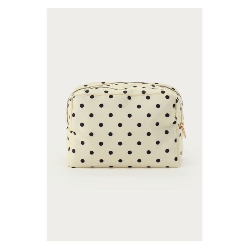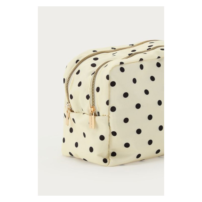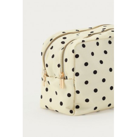 Trousse de toilette à double fermeture éclair à pois blanc cassé.
