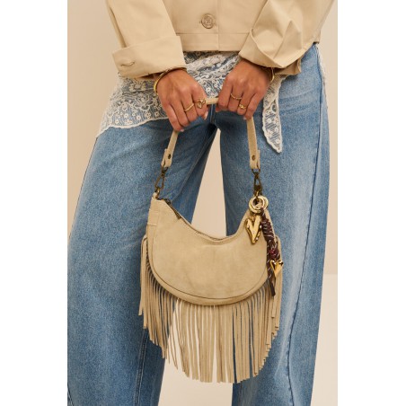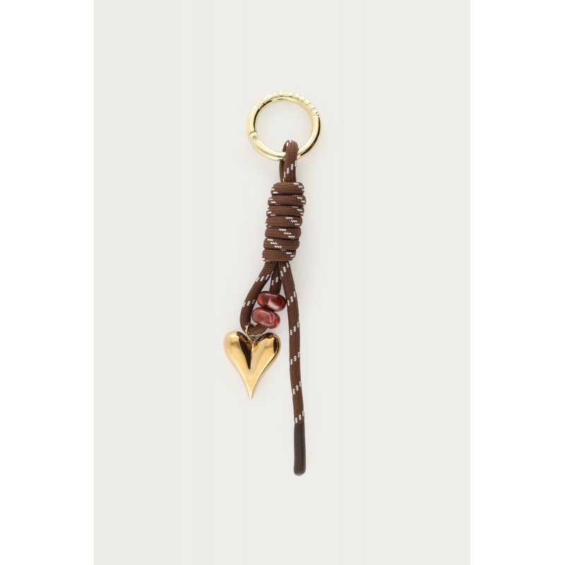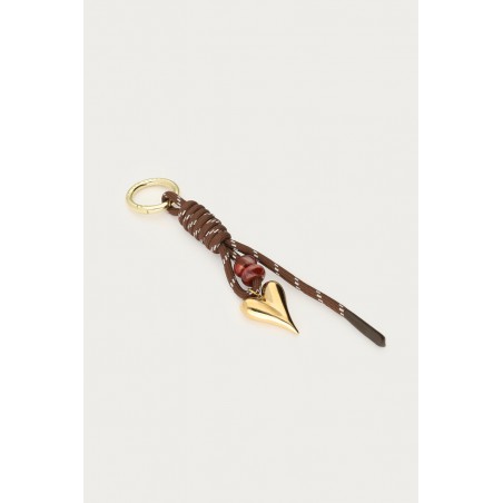 CHARM DE SAC CŒUR AVEC CORDON MARRON ET PERLES FANTAISIE