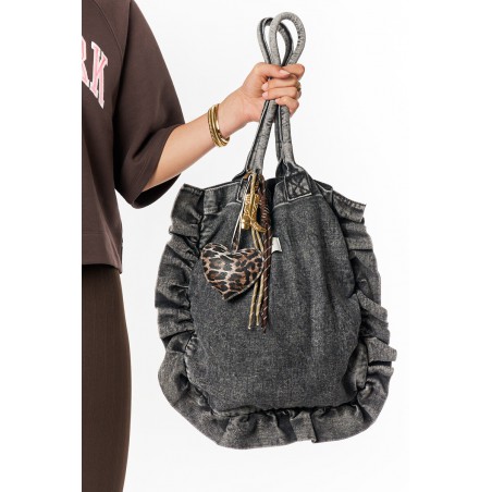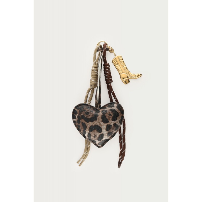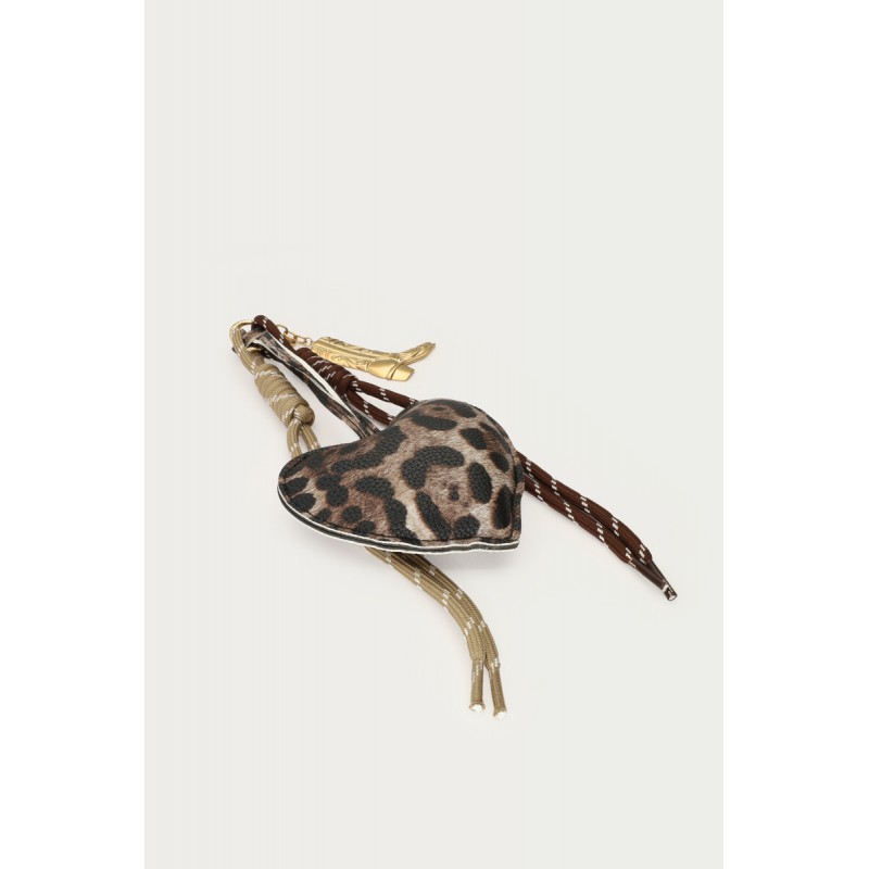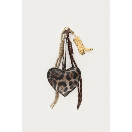 CHARM DE SAC MARRON AVEC CŒUR LÉOPARD