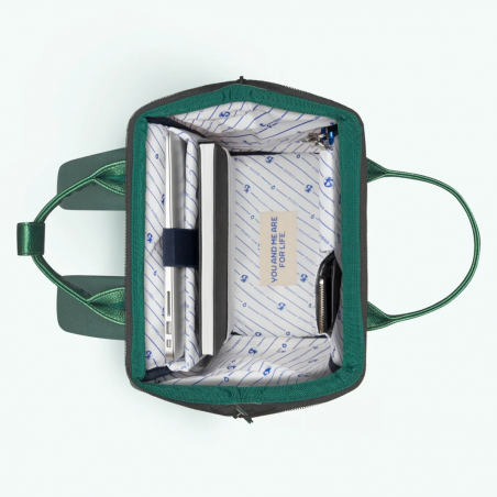 Ce sac est accompagné de 2 poches interchangeables : unie vert d'eau (Leon) + à motifs (Munich)
