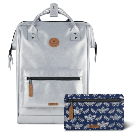 Ce sac à dos est livré avec 2 pochettes interchangeables : Argenté (Fiji) + Bleu (Thurston Garden)