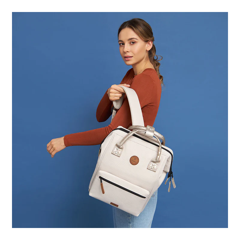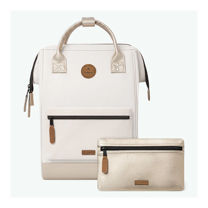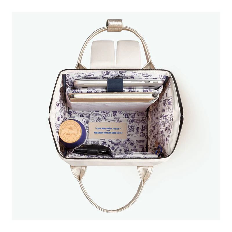 Ce sac est accompagné de 2 poches interchangeables : beige unie (Jardin d'Essai) + beige unie brillante (La Casbah)